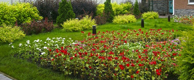 Посадку цветов в широкие рабатки ведут от середины к краям. Рядовая линейная посадка рассады проходит под шнур или по бороздам, проведенным граблями.