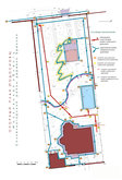 Главная линия тропинки зрительно значительно увеличивает пространство, делая его больше, чем есть в реальности. Учитывая, что владение сильно вытянутой формы, прогулочный маршрут не удалось сделать круговым.